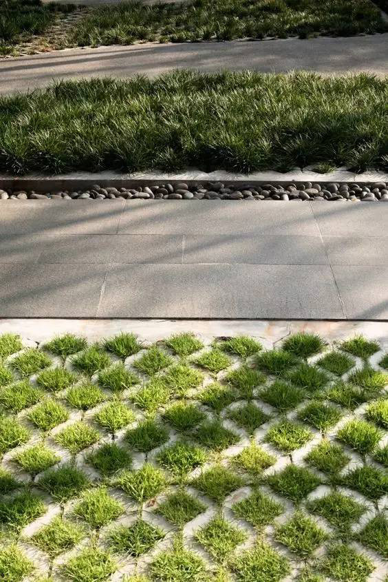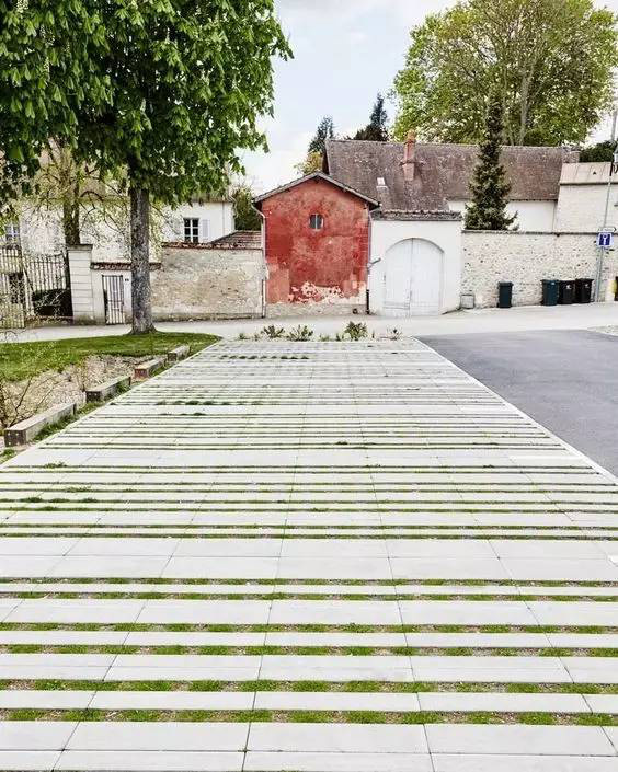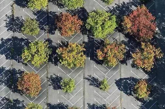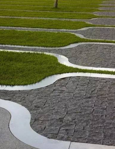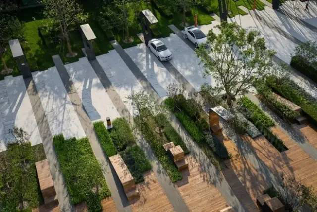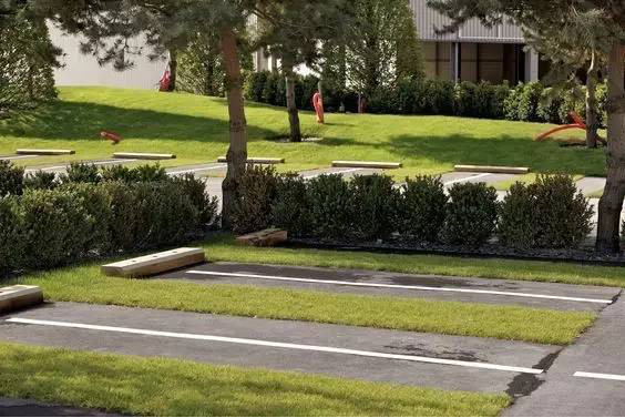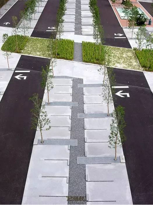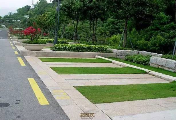 利于更換及修補(bǔ)的防滑鋪裝材料,以及它的透水性,加上鋪設(shè)尺寸符合人體工程學(xué),真是人性、環(huán)保、安全而美觀。而停車場(chǎng)周圍的綠植,起到降溫作用,視覺(jué)上也美化了場(chǎng)景,愉悅內(nèi)心,安全出行,再好不過(guò)。