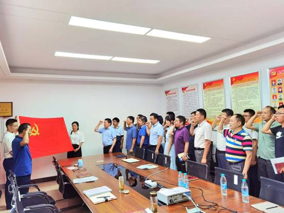 最后,全體黨員面對鮮紅的中國共產黨黨旗,莊嚴地舉起右手,握緊拳頭,集體宣讀入黨誓詞,重溫入黨時的莊嚴承諾和堅定決心。紛紛表示,要不斷提高黨性修養(yǎng),堅定理想信念,自覺踐行黨的宗旨,充分發(fā)揮先鋒模范作用,切實把初心使命變成銳意進取、開拓創(chuàng)新的精氣神和埋頭苦干、真抓實干的自覺行動,以優(yōu)異的成績向建黨99周年獻禮。