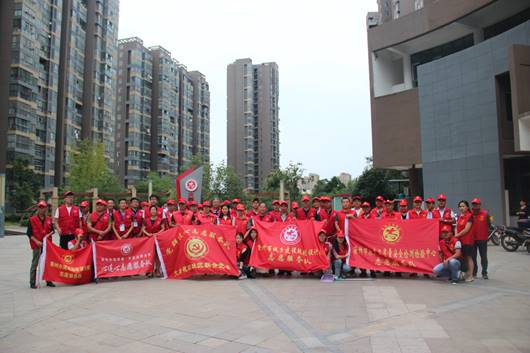 志愿者們?cè)谖牟▓@社區(qū)志愿者服務(wù)廣場(chǎng)合影