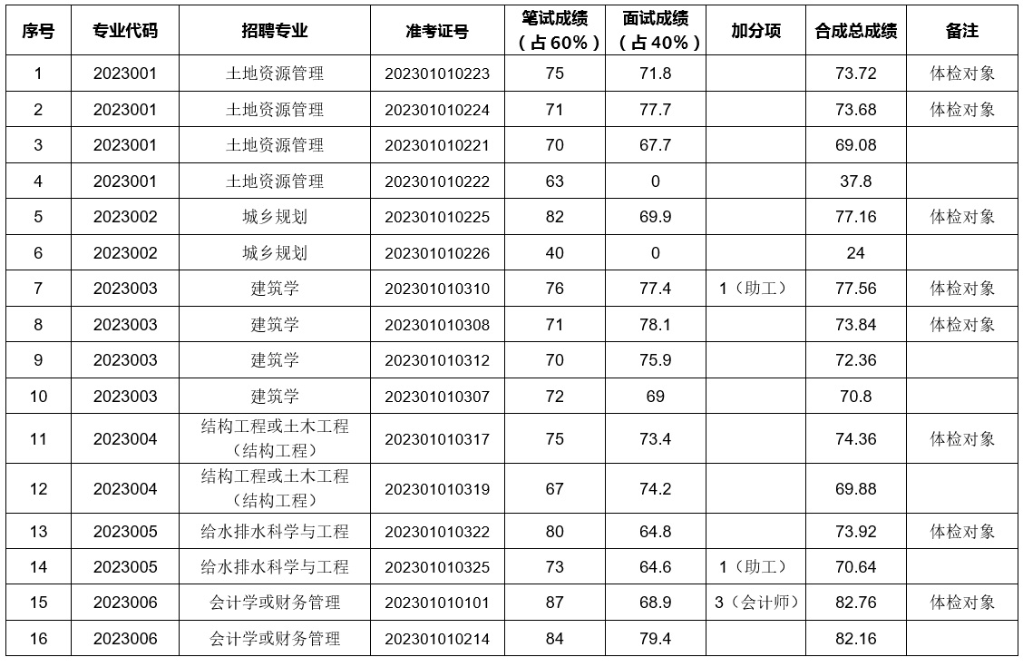 2023年滁州市城鄉(xiāng)建設(shè)規(guī)劃設(shè)計(jì)院有限公司公開招聘技術(shù)人員合成總成績(jī)和體檢對(duì)象公布